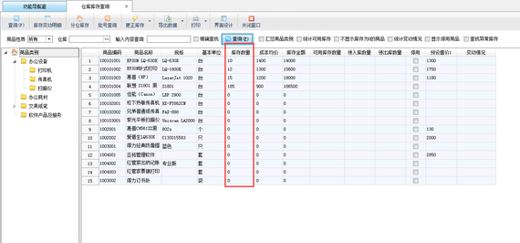 軟件默認倉庫庫存查詢是顯示庫存數量為0的商品,查詢如下圖所示: