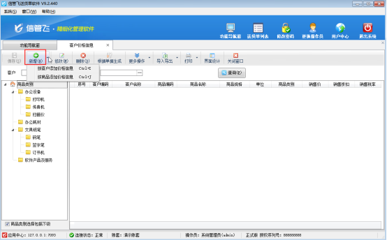 新增:點(diǎn)新增按鈕可以增加價(jià)格信息,可按客戶添加價(jià)格信息以及按商品添加價(jià)格信息。
