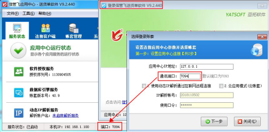 應(yīng)用中心重啟后登錄客戶端程序,點擊“選擇帳套”,修改端口號和應(yīng)用中心程序一致。下一步選擇帳套登錄,如下圖所示: