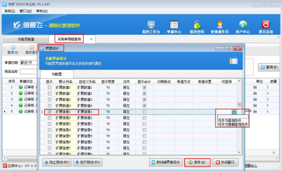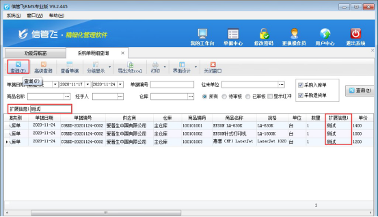 歡迎下載試用支持在單據明細查詢中擴展信息可作為查詢條件的軟件:信管飛RMS軟件