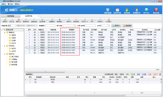 信管飛RMS、信管飛送貨單軟件、信管飛倉庫管理軟件開單保存后都會自動生成單據編號,單據編號流水號依次遞增,單據保存后可以在單據匯總表中查看,方便用戶按單據編號快速查詢單據。