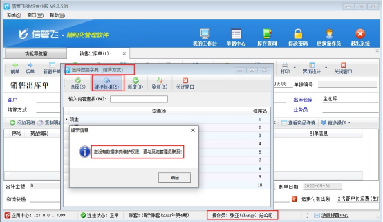 信管飛RMS軟件支持把一列常見內(nèi)容可提前維護(hù)到一個(gè)數(shù)據(jù)字典中,方便開單時(shí)候直接選擇錄入,例如“結(jié)算方式”,為避免設(shè)置多個(gè)操作員登錄軟件隨意修改,信管飛RMS軟件可控制操作員的數(shù)據(jù)字典維護(hù)權(quán)限,本文示范下如何操作?