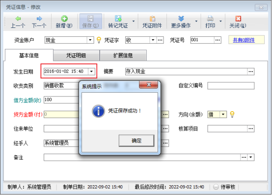 出納記賬軟件登記日記賬憑證時,發生日期默認取電腦操作系統日期,另外如需要補錄出納憑證,系統也支持修改日記賬憑證的發生日期進行補錄出納憑證,部分用戶在修改完日記賬發生日期保存憑證時可能會出現“您錄入的發生日期小于賬期的起始日期,請修改后再保存!”的提示,這是因為該憑證錄入的發生日期小于該賬戶賬期的起始日期導致的。本篇文章介紹一下該如何解決這個問題。