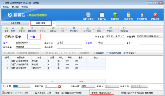 信管飛倉庫管理軟件、信管飛RMS軟件等支持新增多個(gè)操作員并可設(shè)置操作員權(quán)限,有用戶需要開銷售單需要多人審核,軟件支持設(shè)置多級(jí)審核,本文以“信管飛倉庫管理軟件”為例示范下單據(jù)多級(jí)審核功能如何使用?
