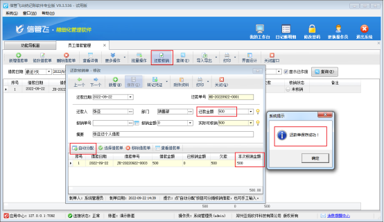 歡迎免費下載試用這款可在借款管理界面進行還款核銷的出納記賬軟件:信管飛出納記賬軟件