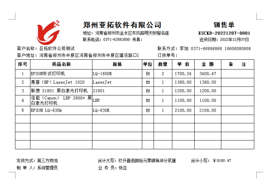 亞拓軟件旗下的信管飛送貨單軟件、信管飛RMS軟件、信管飛倉庫管理軟件,都支持開單打印單據(jù),軟件中內(nèi)置了十幾種打印模板供客戶選擇使用,也支持自定義設(shè)計打印模板,軟件內(nèi)置打印模板設(shè)置自動增加空行,根據(jù)客戶需要模板不顯示空白行,我們以送貨單軟件為例設(shè)置下打印模板根據(jù)單據(jù)明細顯示打印行數(shù)。未調(diào)整前打印預(yù)覽顯示如下圖:
