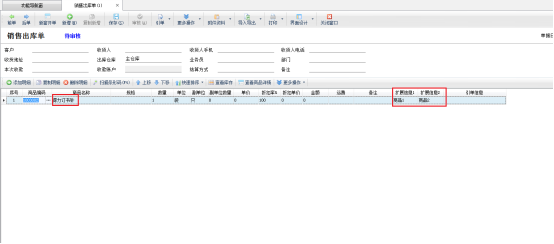 新開一個單據,點界面設計把單據明細的擴展信息勾選顯示出來,然后在開單時,選擇商品名稱后,該商品的擴展信息就會自動被提取到單據。下圖是商品“得力訂書針”的擴展信息1和擴展信息2顯示的界面。