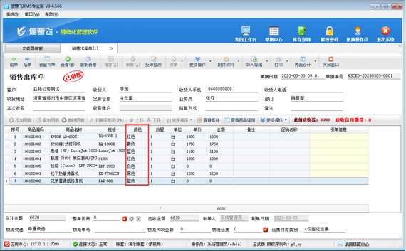 如下圖所示,銷售出庫單界面配置有“顏色”數據項,在銷售明細查詢界面如何配置顯示?
