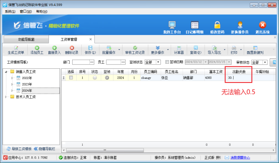 設(shè)置完成后,關(guān)閉工資單管理界面,重新打開,即可錄入小數(shù)位,如圖所示。