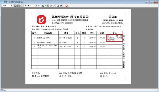 設置完成后,點擊保存按鈕,預覽查看打印樣式,如下圖: