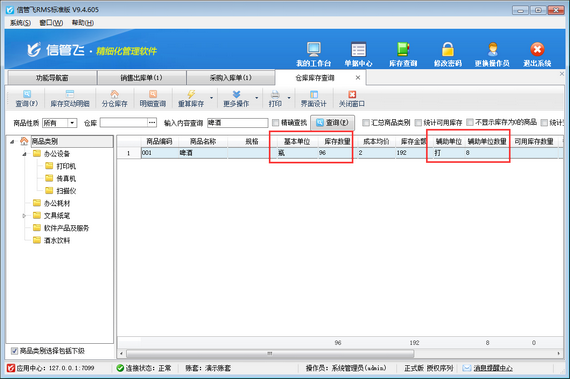 更好地管理庫存:通過設置輔助單位,我們可以更清晰地了解庫存情況。比如,我們可以知道某種商品一共有多少箱,每箱又包含多少個,從而更準確地把握庫存量。如下圖所示,啤酒剩余庫存96瓶(8打)。