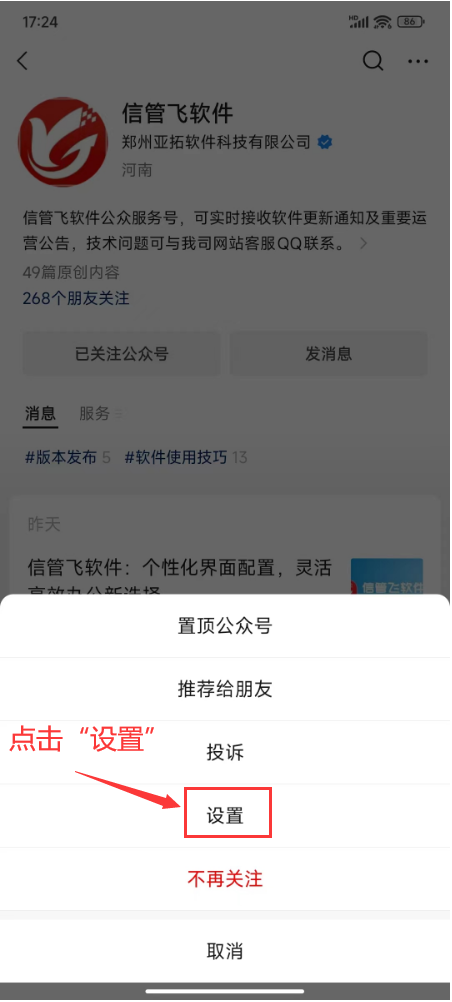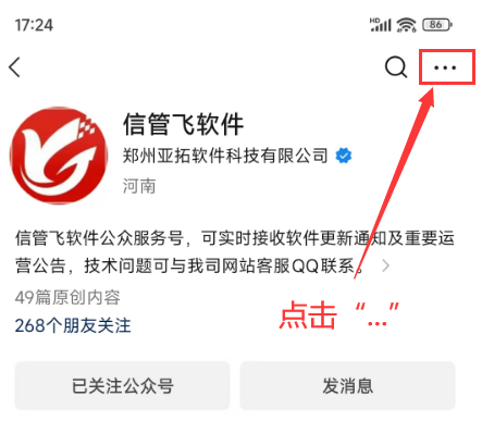 部分用戶想要將“信管飛軟件”公眾號“添加到桌面”上,方便快捷打開,但不知道如何操作,本篇文章介紹一下操作方法。