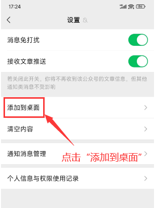 點擊“添加到桌面”,就可以將“信管飛軟件”公眾號的快捷方式添加到手機系統桌面上啦。