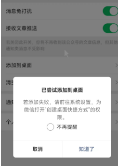 如果添加失敗,請打開手機系統設置,然后為微信打開“創建桌面快捷方式”的權限即可,如下圖所示。