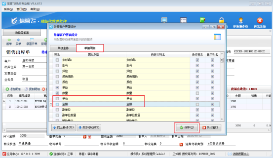 在外部客戶界面設(shè)計(jì),單據(jù)明細(xì)項(xiàng)取消勾選單價(jià)和金額,然后點(diǎn)擊保存按鈕,接收訂單消息詳情不能查看單價(jià)和金額,如圖所示: