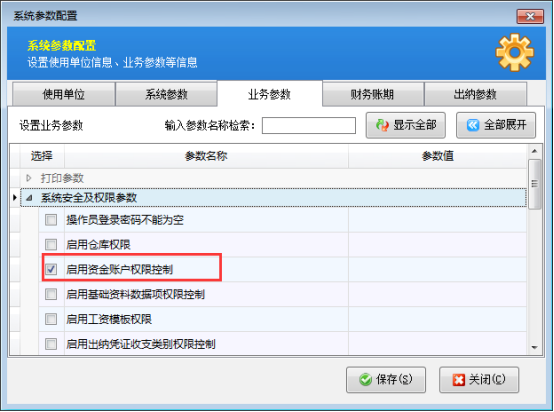 經檢查,出現此情況是因為勾選啟用了參數“啟用資金賬戶權限控制”導致,如下圖所示: