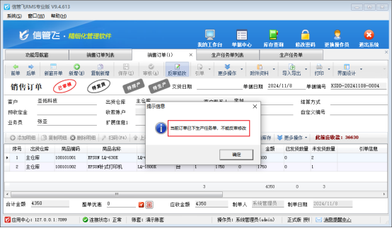 歡迎免費下載試用這款可控制已下達生產任務的訂單是否可以修改的進銷存管理軟件信管飛RMS軟件