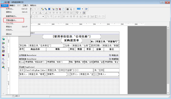 單據(jù)界面點(diǎn)擊打印----打印格式設(shè)計(jì)----點(diǎn)擊設(shè)計(jì)格式,進(jìn)去模板設(shè)計(jì)器界面,在模板設(shè)計(jì)器界面調(diào)整打印紙張頁(yè)面設(shè)置。