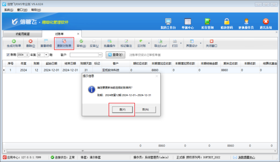 若是已生成對賬單的客戶,在對賬賬期內有增加新的銷售單據,對賬前需要亞拓科技軟件客戶更新對賬單,更新客戶最新銷售明細: