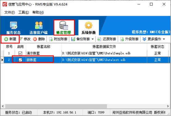 打開紅色應(yīng)用中心程序,在賬套管理中點(diǎn)擊“新建”新增新賬套,如下圖所示: