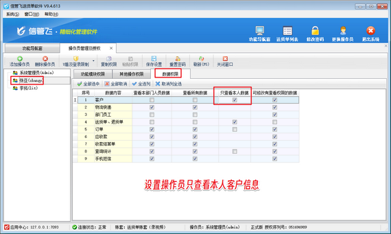 歡迎下載試用這款支持設(shè)置操作員只能查看本人客戶信息的送貨單軟件:信管飛送貨單軟件。