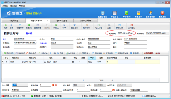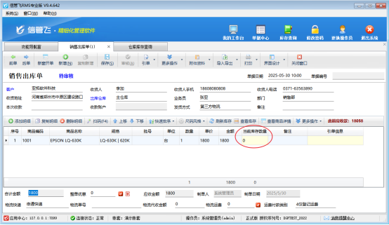 解決方法:將銷售出庫單時間修改為入庫時間之后,比如5月30日14點30分,再點擊刷新庫存,即可更新商品“EPSON LQ-630K”銷售出庫單中當前庫存數(shù)量。
