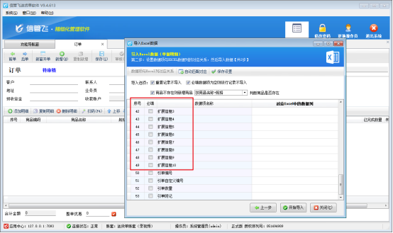 信管飛軟件支持通過Excel導入數據,通過Excel數據導入可以將數據方便快捷的導入到軟件中,省去了使用初期大量的數據的錄入所要消耗的時間及人力物力,并避免人為錄入的誤差,使數據錄入的簡單、準確、高效。然而,部分客戶使用的擴展信息字段比較多在導入明細數據時可能會遇到擴展信息10之后的擴展字段不顯示。下面我們以“信管飛送貨單軟件”為例,介紹下出現這種情況如何解決?