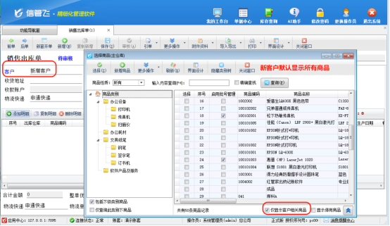 信管飛倉庫管理軟件、信管飛RMS軟件、信管飛送貨單軟件推出“選擇商品窗口僅顯示客戶相關(guān)商品”功能,讓銷售開單更精準(zhǔn)、更高效,助力企業(yè)實(shí)現(xiàn)精細(xì)化客戶服務(wù)與管理升級。
