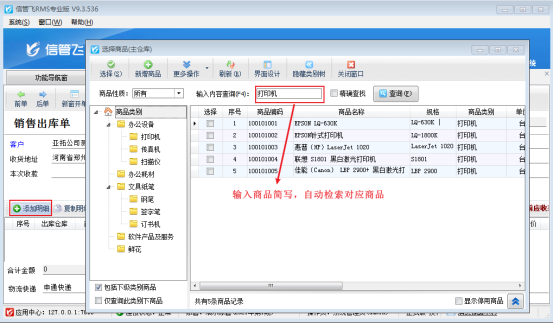 信管飛RMS軟件開單前可提前維護(hù)好商品信息到基礎(chǔ)資料中,新開單據(jù)選擇客戶后,點擊“添加明細(xì)”可彈出選擇商品界面,可選擇添加好的商品信息,有用戶反映在選擇商品界面,查詢窗口輸入商品簡寫不自動過濾,需要點擊下查詢才會進(jìn)行檢索,如下圖所示: 如何設(shè)置輸入商品時自動檢索,操作步驟如下,在功能導(dǎo)航窗點擊“系統(tǒng)管