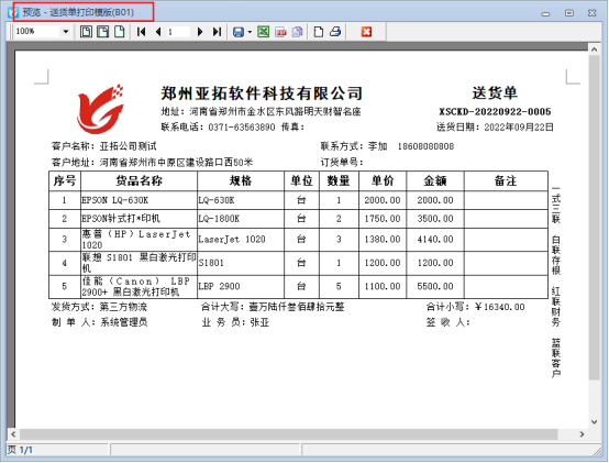 信管飛送貨單軟件是一款集開送貨單、打印送貨單、管理應(yīng)收款和對賬單一體的軟件,送貨單的打印模板支持自定義設(shè)計多種樣式,軟件中默認(rèn)自帶十幾種打印模板樣式,有用戶需要打印模板可以設(shè)計打單內(nèi)容即打即停(有多少打印多少)的格式,本文以內(nèi)置打印模板B01進(jìn)行示范。 新開送貨單并確認(rèn)開單,在打印按鈕下選