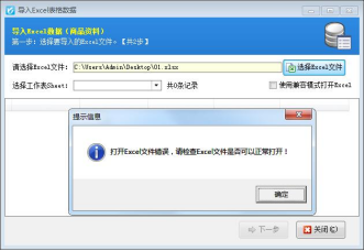 信管飛RMS、信管飛送貨單軟件、信管飛出納記賬系統(tǒng)都支持通過Excel導(dǎo)入數(shù)據(jù),通過Excel數(shù)據(jù)導(dǎo)入可以將數(shù)據(jù)方便快捷的導(dǎo)入到軟件中,省去了使用初期大量的數(shù)據(jù)的錄入所要消耗的時(shí)間及人力物力,并避免人為錄入造成的誤差,使數(shù)據(jù)的錄入簡單、準(zhǔn)確、高效。導(dǎo)入Excel數(shù)據(jù)時(shí),如果是Excel2007以上版本的格式文件(.xlsx),系統(tǒng)提示:打開Exce