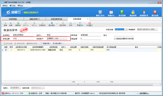演示視頻觀看鏈接:http://www.yatsoft.com/news/video/202301/1859.html 收款結(jié)算單可用于登記收款信息,并結(jié)銷應(yīng)收款記錄,信管飛軟件支持在開銷售出庫(kù)單時(shí)直接輸入本次收款金額,銷售出庫(kù)單審核后軟件會(huì)自動(dòng)生成收款結(jié)算單并結(jié)銷該單據(jù)產(chǎn)生的應(yīng)收款。 如