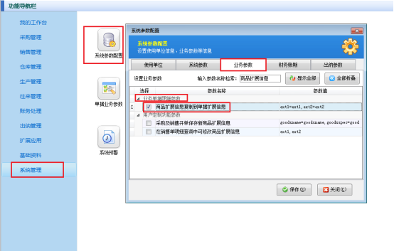 演示視頻觀(guān)看鏈接:如何設(shè)置商品擴(kuò)展信息復(fù)制到單據(jù)擴(kuò)展信息演示視頻 信管飛RMS軟件、信管飛倉(cāng)庫(kù)管理軟件、信管飛送貨單軟件都支持設(shè)置商品的擴(kuò)展信息提取到單據(jù)的擴(kuò)展信息,啟用此參數(shù)后,在開(kāi)單據(jù)時(shí)系統(tǒng)會(huì)自動(dòng)調(diào)取商品信息中擴(kuò)展信息的數(shù)據(jù),省去了每次開(kāi)單錄入單據(jù)擴(kuò)展信息的時(shí)間,提高了開(kāi)單效率。下面我們以信管飛R