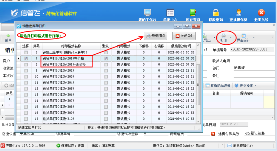 信管飛系列軟件都支持自定義設計打印模板,軟件單據(jù)中默認有設計好的打印樣式,有用戶存在打印有價格和無價格兩種送貨單的打印需求,這種在軟件中該如何設置?本文以“信管飛RMS軟件”為例示范下。 演示視頻觀看鏈接:https://www.yatsoft.com/news/video/202302/1917.h