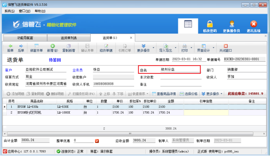 演示視頻觀看鏈接:打印模板如何顯示開單界面商品備注信息演示視頻 信管飛軟件支持自定義設計打印模板,部分客戶在開單界面調(diào)取了商品備注信息,那么如何在打印模板中把商品備注信息顯示出來呢?本文以“信管飛送貨單軟件”為例進行示范下。 新開送貨單確認保存后,菜單