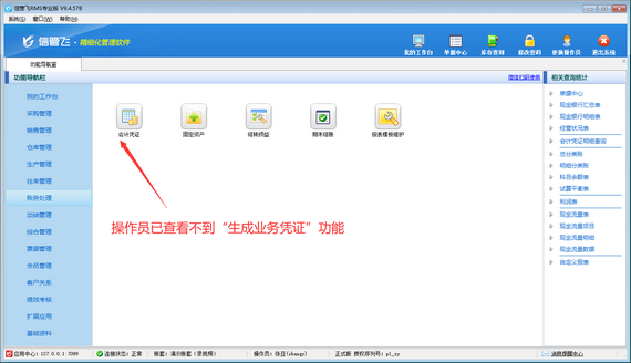 演示視頻觀看鏈接:信管飛RMS如何設(shè)置操作員不可生成業(yè)務(wù)憑證演示視頻 信管飛RMS專業(yè)版包含財務(wù)處理功能,可登記會計憑證,支持直接對已開單據(jù)進(jìn)行快速生成會計憑證操作,如下圖所示。為避免操作員誤生成會計憑證,軟件支持設(shè)置操作員權(quán)限,本篇文章介紹下如何設(shè)置操作員不可使用生成業(yè)務(wù)憑證功能? &nb