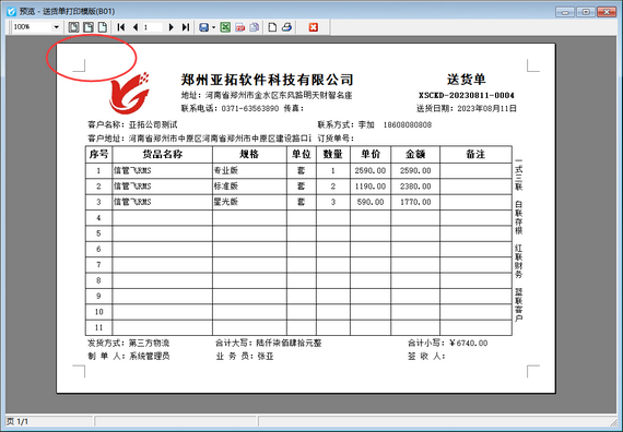 信管飛系列軟件支持自定義打印格式模板,有用戶在設計模板時會遇到以下的問題,超出打印范圍的文本框找不到,也無法刪除,如下圖所示,本篇文章介紹一下操作方法。 演示視頻觀看鏈接:設計模板時超出打印范圍的文本框如何刪除演示視頻 以送貨單軟件為例,打開一個送貨單,在單據(jù)界面工具欄點擊“打印”—》“打