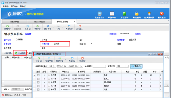 此文章相關演示視頻:按商品填開發(fā)票時提示軟件已啟用對賬單,如何解決? 企業(yè)在開采購入庫單和銷售出庫單時都存在開發(fā)票的情況,信管飛RMS發(fā)票管理功能可以讓企業(yè)高效快速地管理發(fā)票信息。 有用戶在填開發(fā)票時,會出現(xiàn)按商品無法填開發(fā)票的情況,系統(tǒng)提示“軟件已啟用