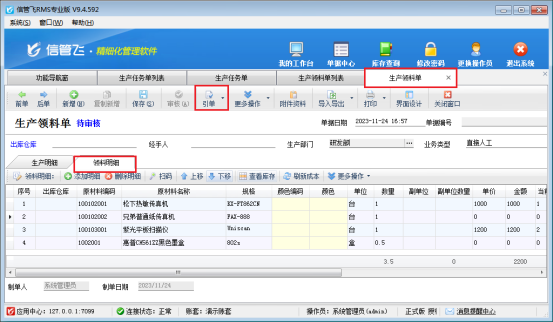 生產領料單包括生產產品明細和領料明細兩部分,支持根據“生產模板”自動生成需要的原材料明細。有用戶使用時不需要建立生產模板自己在生產任務單錄入生產明細和領料明細,會出現生產領料單引用生產任務單時,領料明細沒有引用過去,本文介紹下生產領料單引用生產任務單,沒有領料明細,如何解決? 在功能導航欄點擊生產管理