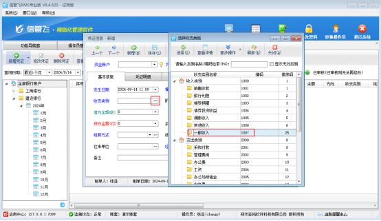 信管飛RMS標準版和專業版支持出納模塊,可登記現金和銀行日記賬,日記賬登記時需要選擇收支類別,支持新增收支類別。操作員新增收支類別后在新增憑證無法選擇新增的收支類別,該如何解決?     出現此問題原因:新增的收支類別,操作員沒有使用權限導致新增憑證找不到新的收支類別,如圖所示:  &nb