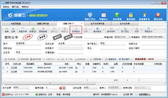 • 修改已下達任務單的銷售訂單時提示“當前訂單已下生產…