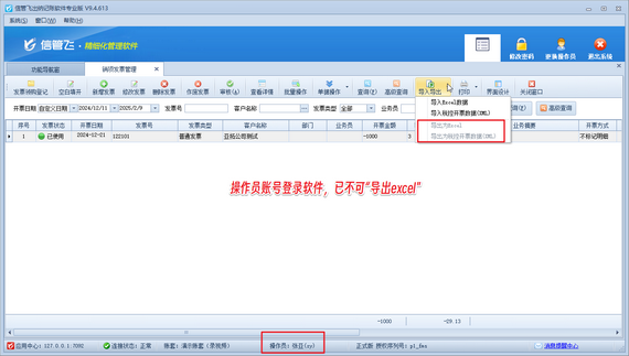 在企業的采購與銷售流程中,發票管理至關重要。信管飛出納記賬軟件憑借其強大的發票管理功能,助力企業高效、精準地處理發票信息。為了滿足部分用戶對于數據安全性的需求,防止操作員導出發票記錄,本篇文章介紹一下出納記賬軟件如何設置操作員不可導出進/銷項發票記錄。 演示視頻觀看鏈接:出納記賬軟件如何設置操作員不可導出進/銷項發票信息演示