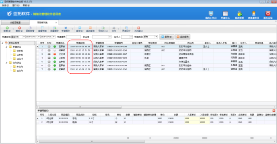 亞拓管理軟件、紅管家倉(cāng)庫(kù)管理軟件、紅管家送貨單軟件、紅管家出納記賬軟件都可根據(jù)用戶自身業(yè)務(wù)特點(diǎn)進(jìn)行自定義設(shè)置日期顯示格式,以滿足更多用戶的需求。下面我們以亞拓管理軟件專業(yè)版的采購(gòu)單列表為例介紹一下日期顯示格式的設(shè)置過程。 登錄軟件,在功能導(dǎo)航窗點(diǎn)“采購(gòu)管理”—》“采購(gòu)單列表”即可進(jìn)入“采購(gòu)單列表”界面,如圖1所示,系統(tǒng)默認(rèn)的