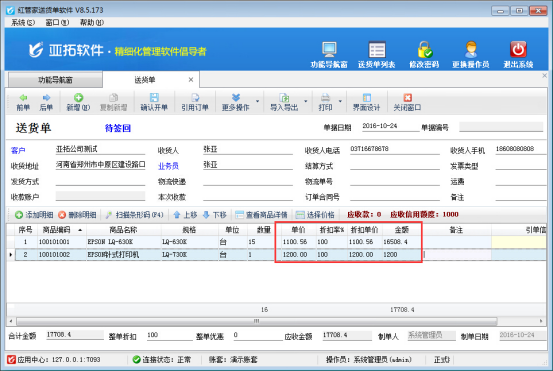 對(duì)于不同的商品都能夠使用軟件開單計(jì)算,亞拓軟件下的送貨單軟件和亞拓管理軟件等都支持可在開單界面設(shè)置擴(kuò)展數(shù)值來支持計(jì)算公式的使用,比如有些商品需要寬乘高來計(jì)算面積。為了使客戶對(duì)于計(jì)算公式的計(jì)算結(jié)果更便捷使用,軟件可設(shè)置修改由配置計(jì)算公式得的計(jì)算結(jié)果。 以送貨單軟件為例,正常的配置計(jì)算公式開單,計(jì)算結(jié)果是不允許修改,