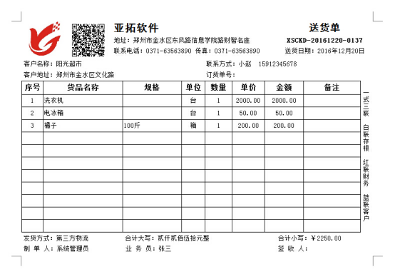 • 可以打印二維碼信息的送貨單打印軟件