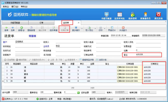 紅管家送貨單軟件、亞拓管理軟件都支持先開訂單,然后送貨單和采購銷售出庫單可以引用訂單的內容。有時候需要引用訂單的附記內容,可以在送貨單等單據引用訂單的時候可在送貨單界面的單據明細顯示引單附記內容。     以送貨單軟件為例,如何引用訂單顯示引單附記?軟件默認引單附記調用的是訂單的備注內容。先開一個訂單,訂單的
