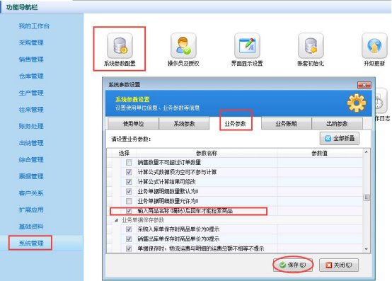 亞拓管理軟件(星光版、標準版、專業版)、紅管家倉庫管理軟件及紅管家送貨單軟件都支持在開單的時候直接輸入商品,軟件默認設置是需要輸入商品后需要Enter鍵確認,如需要不按回車鍵檢索直接輸入需要設置一下軟件的業務參數。     以亞拓管理軟件為例,詳細介紹如何設置開單輸入商品后直接檢索?在導航窗選擇“系統管理”—
