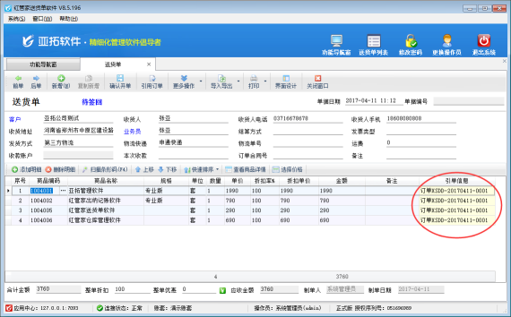 紅管家送貨單打印軟件是一款針對中小型企業開發的集送貨管理(發貨管理)、退貨管理(銷售退貨)、銷售收款(應收款管理)等功能為一體的送貨管理及打印軟件(送貨單打印軟件、發貨單打印軟件、出貨單打印軟件、收據打印軟件、貨單票據打印軟件)。    紅管家送貨單軟件內送貨單引用訂單時支持可選擇未審核的訂單(默認為不可選擇未審核的訂單,如下圖一