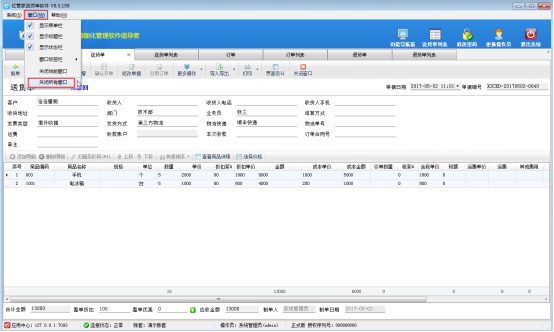 紅管家送貨單軟件、紅管家倉庫管理軟件、紅管家出納記賬軟件、紅管家票據打印軟件和亞拓管理軟件都可以同時打開多個業務單據窗口,方便用戶對不同的業務單據進行切換窗口查看信息等操作。打開多個窗口界面后,需要關閉這些已打開的窗口時,可以逐個關閉各個窗口,也可以一次性關閉所有窗口,如何快速關閉所有已打開窗口呢? 我們以送貨單軟件為例,示