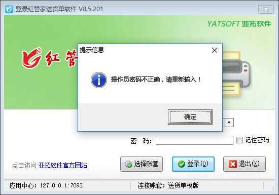 亞拓管理軟件(進銷存管理軟件)及紅管家系列軟件(紅管家出納記賬軟件、紅管家送貨單軟件、紅管家倉庫管理軟件、紅管家票據(jù)打印軟件等),操作員(系統(tǒng)管理員Admin)默認都是沒有密碼的,即首次登錄的時候不需要輸入密碼,直接點擊“登錄”按鈕即可登錄軟件。建議正式使用軟件后,可以對每個操作員設(shè)置一下密碼,本篇文章我們以紅管家送貨單軟件為例來演示一下如何設(shè)置操作員密碼。&